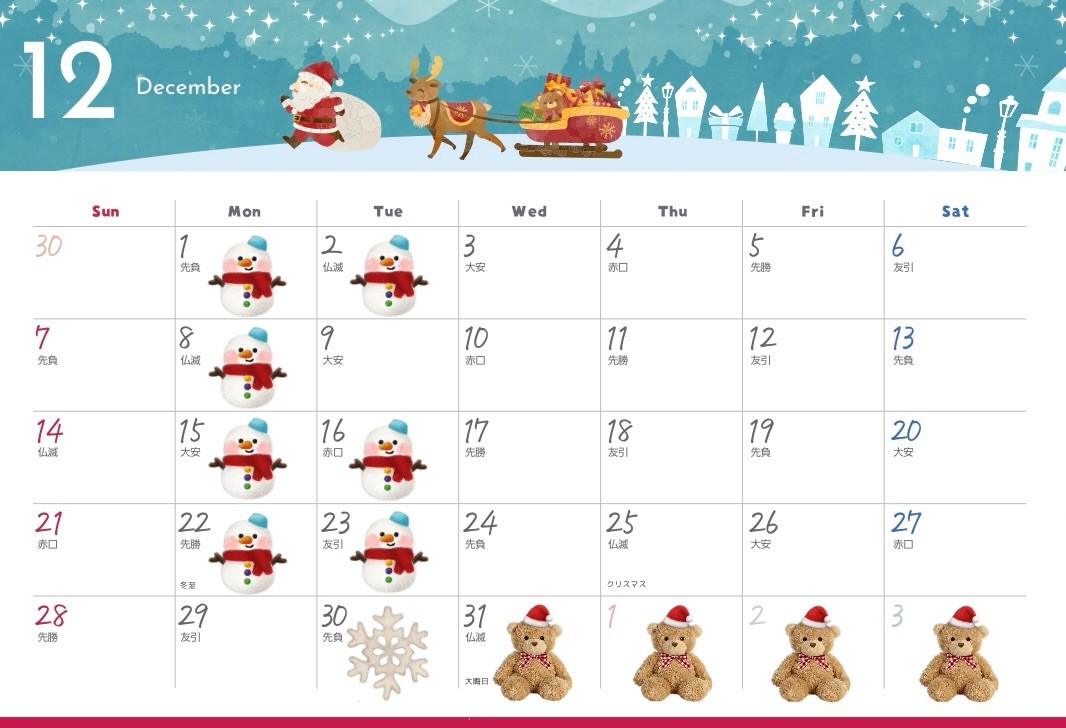 ❄️☃️12月の営業日のお知らせです⛄❄️